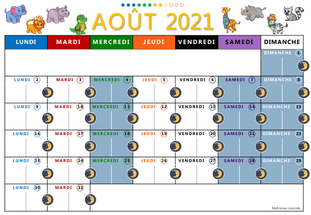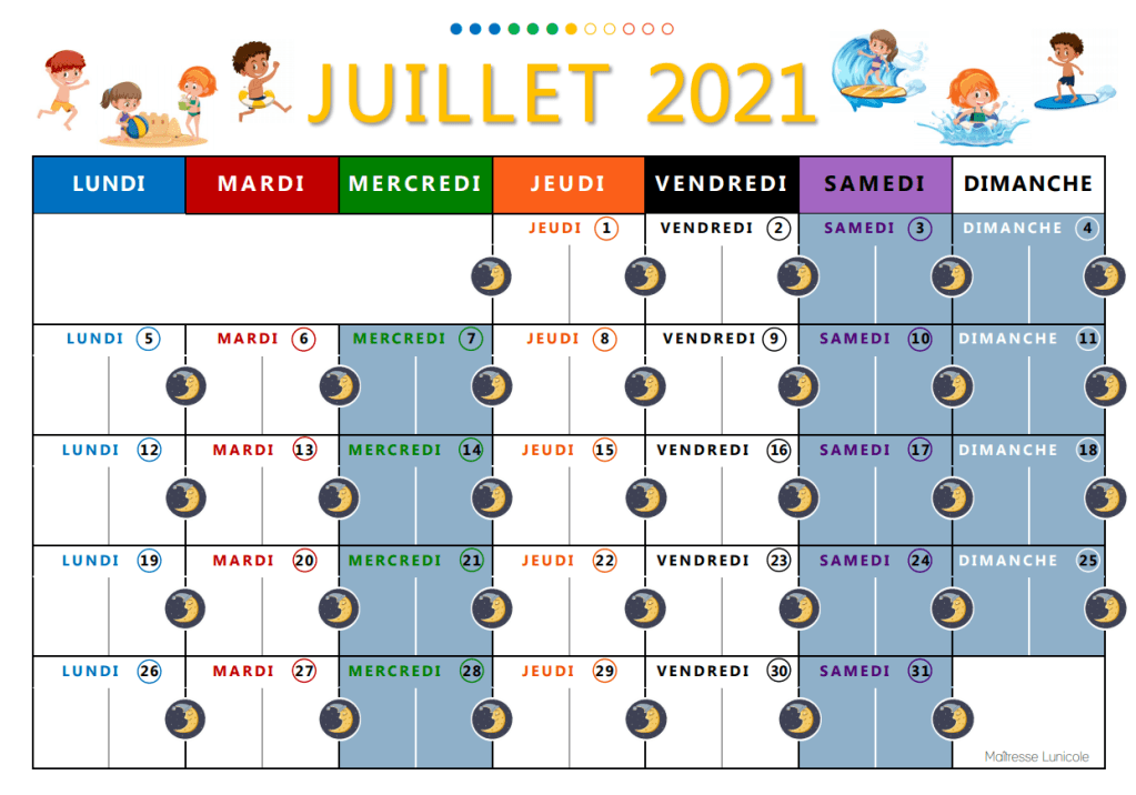 Autre version : Calendrier juillet 2021 avec école le mercredi