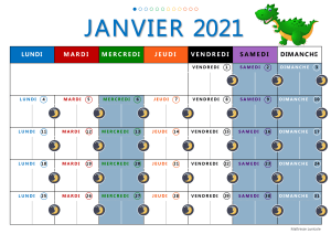 Autre version : Calendrier janvier 2021 avec école le mercredi