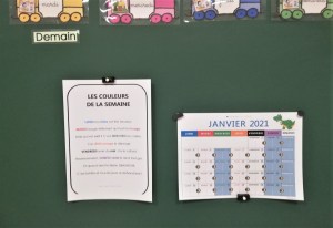 Merci à Elsa pour sa photo, sur laquelle se trouvent mon calendrier de janvier 2021 et la comptine des couleurs de la semaine !