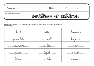 Voici un affichage collectif et un exercice sur les préfixes et les suffixes pour les CM1-CM2.