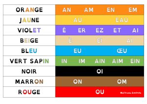 J’utilisais initialement l’arc-en-ciel des sons de École du bord du monde en APC avec mes CE1 avant de le mettre au format tableau (et je n’utilise pas tout à fait les mêmes couleurs). N’hésitez pas à jeter un œil à son travail ici : https://ecoleduborddumonde.com/larc-en-ciel-des-sons-complexes/.