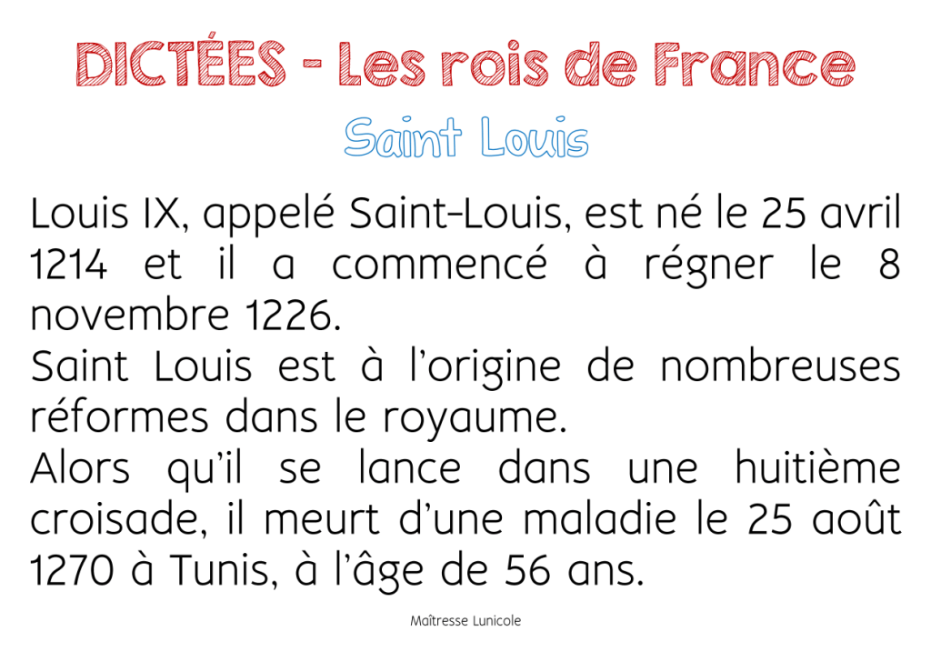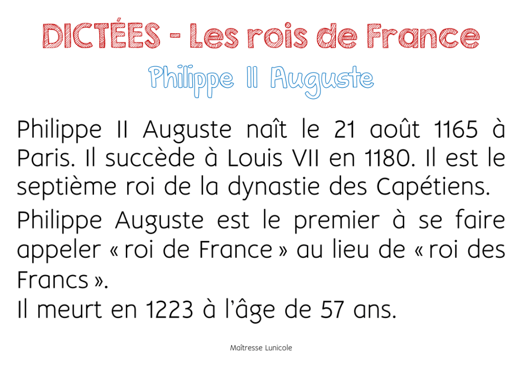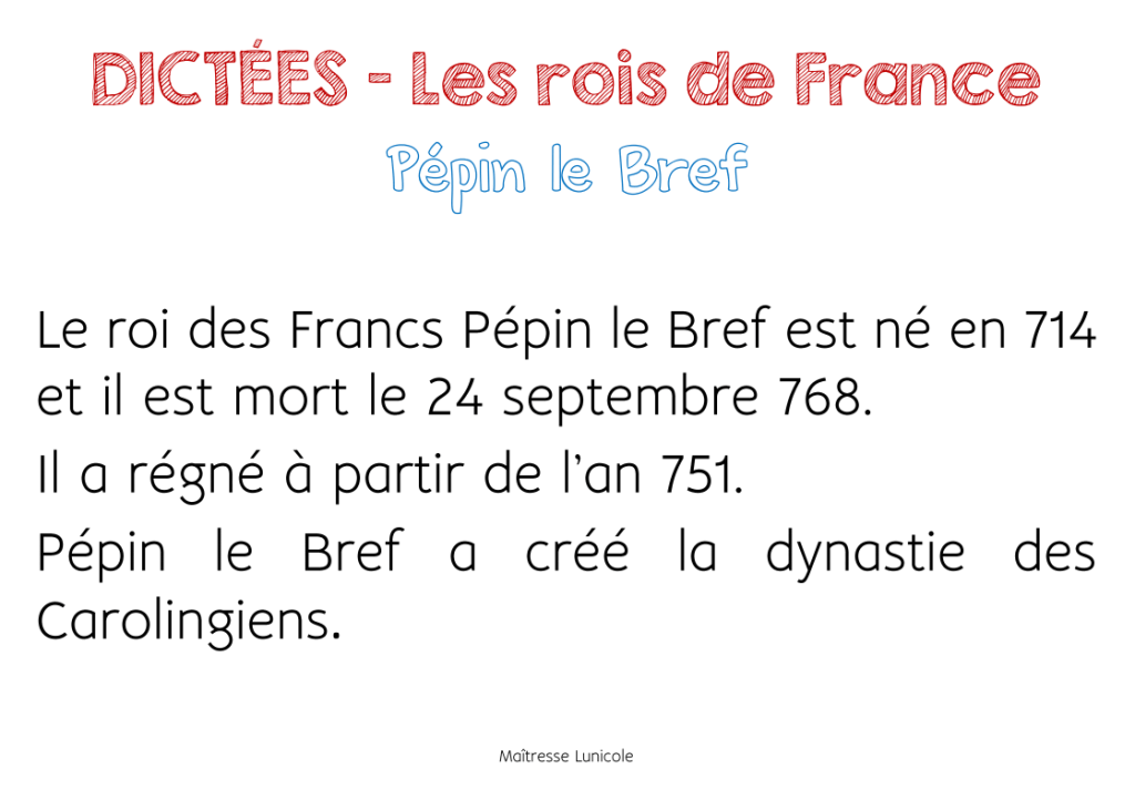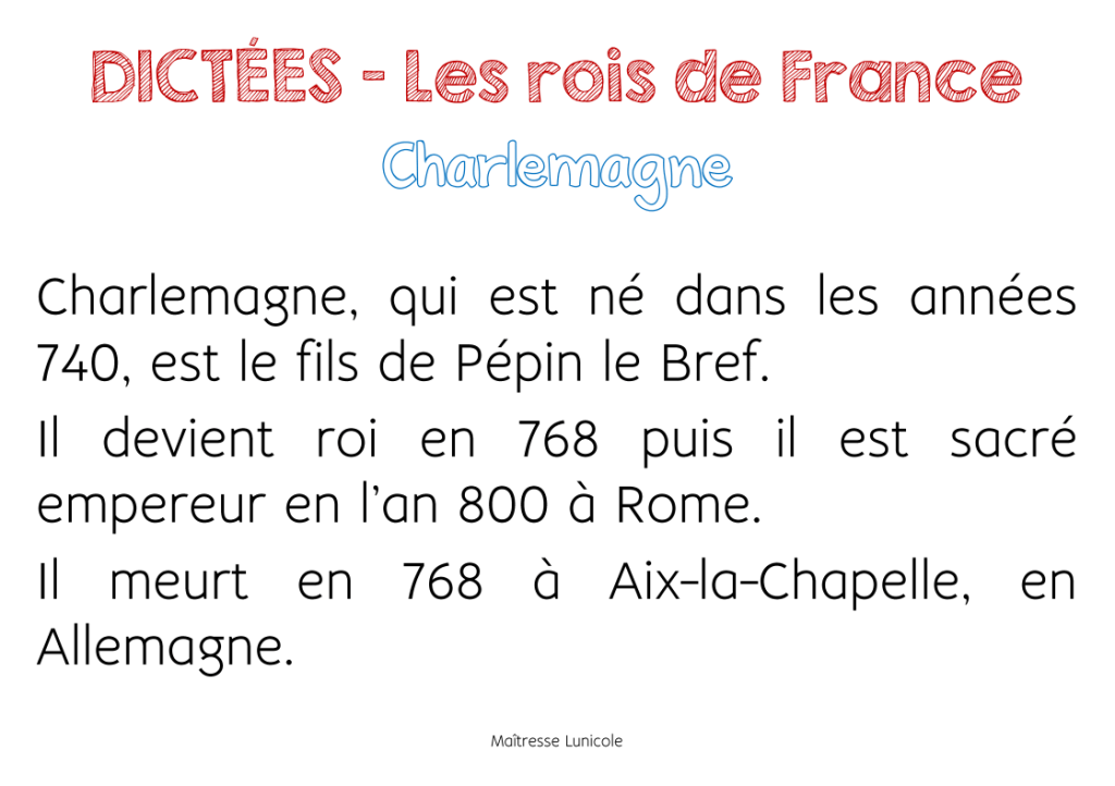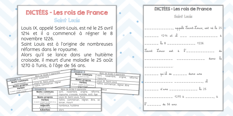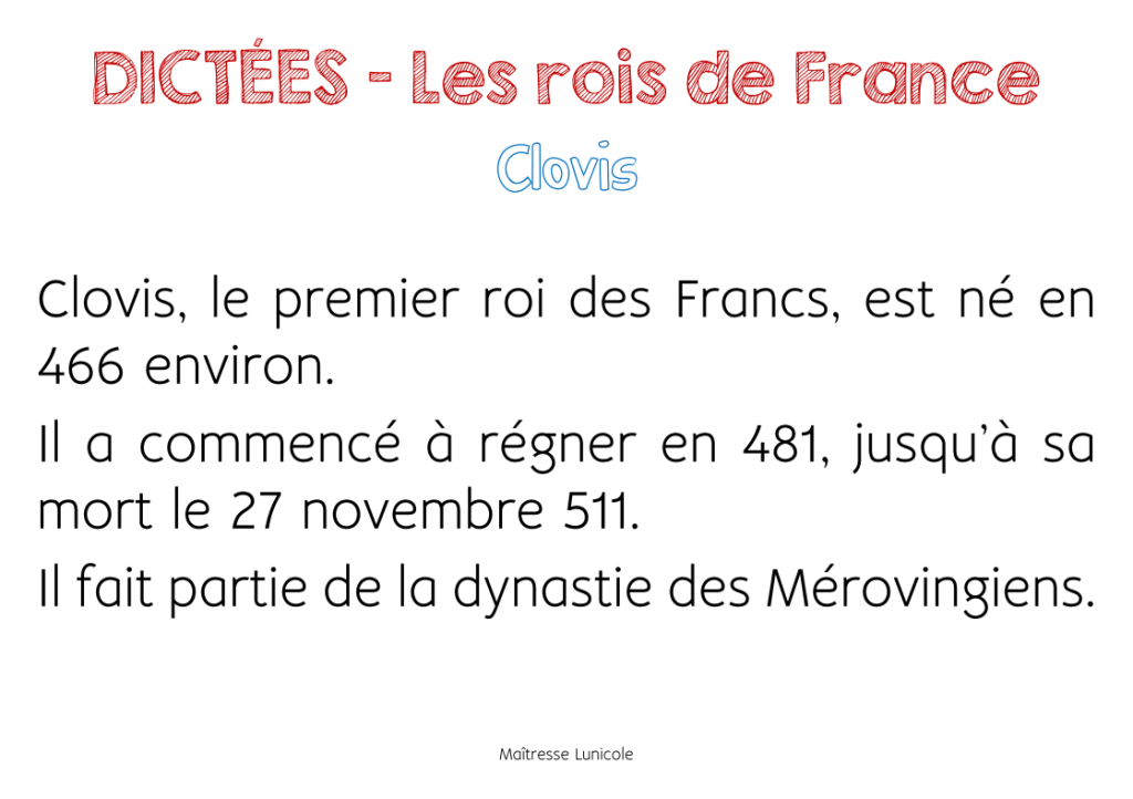 Dans cet article, je vous propose 10 dictées différenciées sur les principaux rois de France.