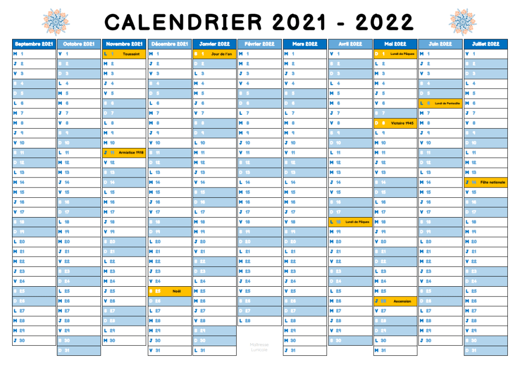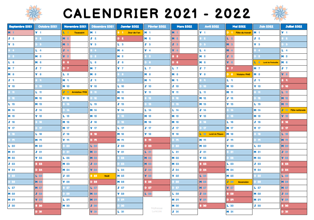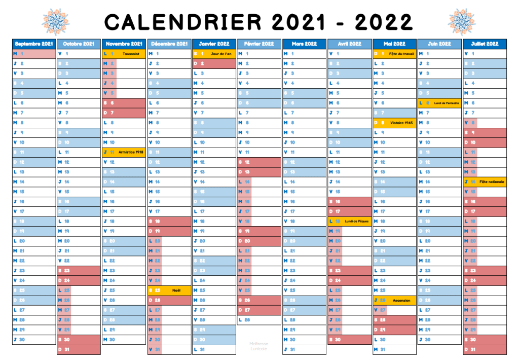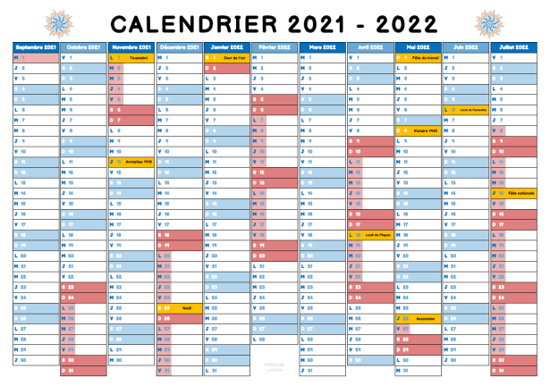 Voici un calendrier annuel à afficher. Je vous le propose en plusieurs exemplaires :