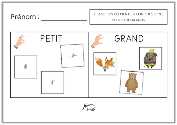4. NOUVEAU : Fiche : Classe les animaux selon s’ils sont petits ou grands