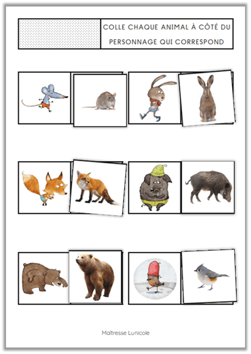 3. Fiche : Colle chaque animal à côté du personnage qui correspond
