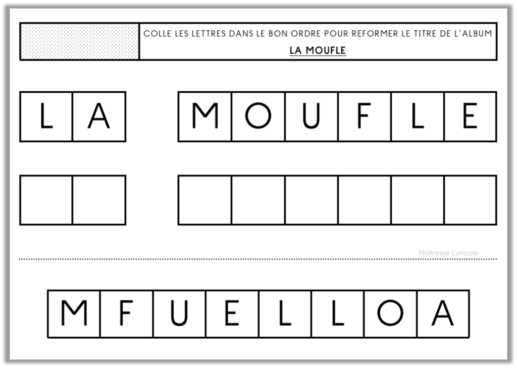 Fiche : Colle les lettres dans le bon ordre pour reformer le titre de l’album
