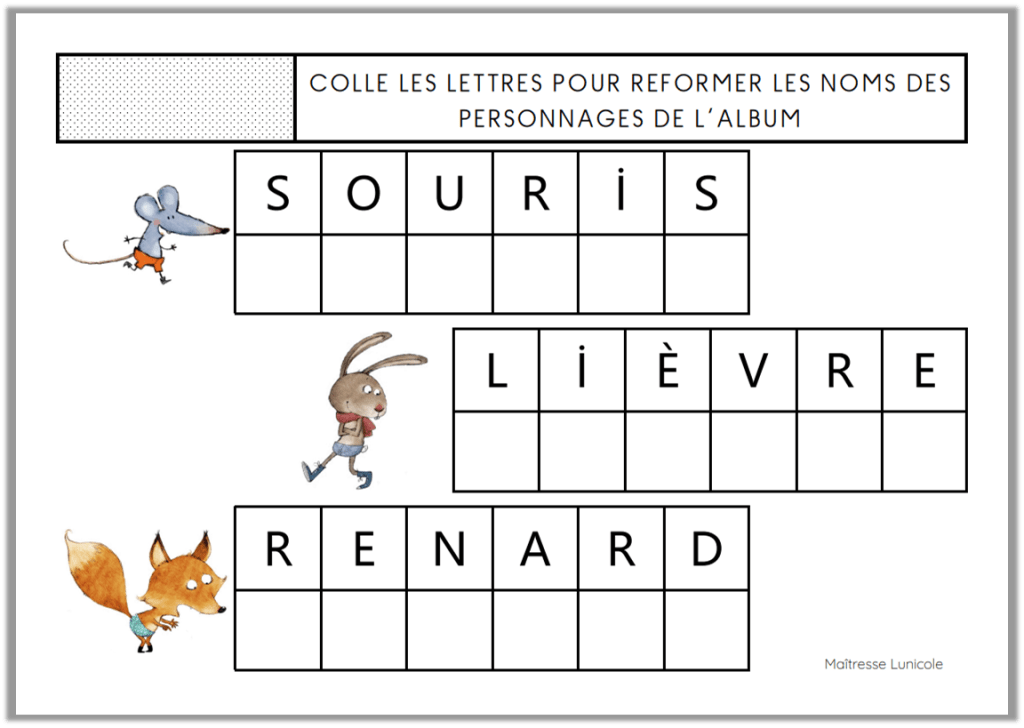 3. Fiche : Colle les lettres dans le bon ordre pour reformer les noms des personnages