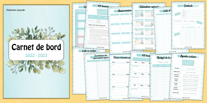 Bientôt la rentrée… Il était temps que je me trouve un joli carnet de bord,où je peux imprimer juste ce dont j’ai besoin !! Ce sera donc le vôtre cette année… Un grand MERCI pour ce travail partagé.