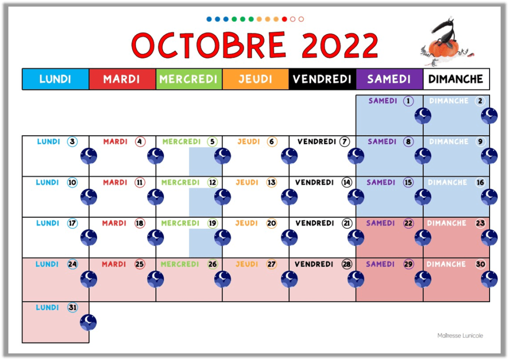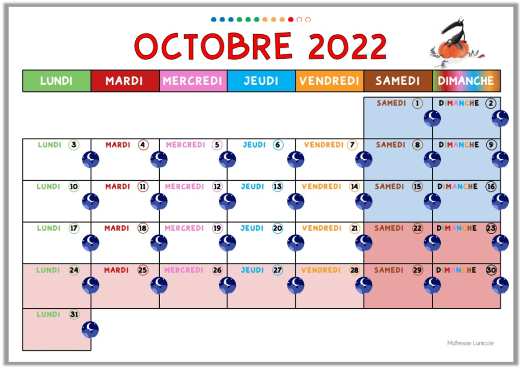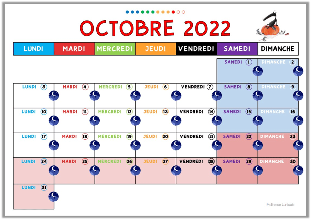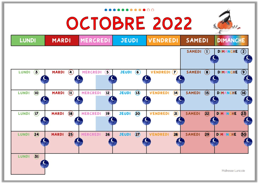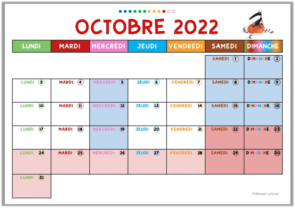 - Calendriers en tableau aux couleurs de la comptine (sans dodos)