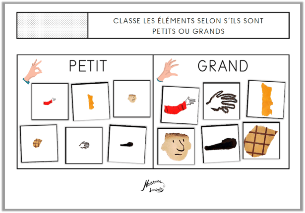 - Classe les éléments selon s’ils sont petits ou grands