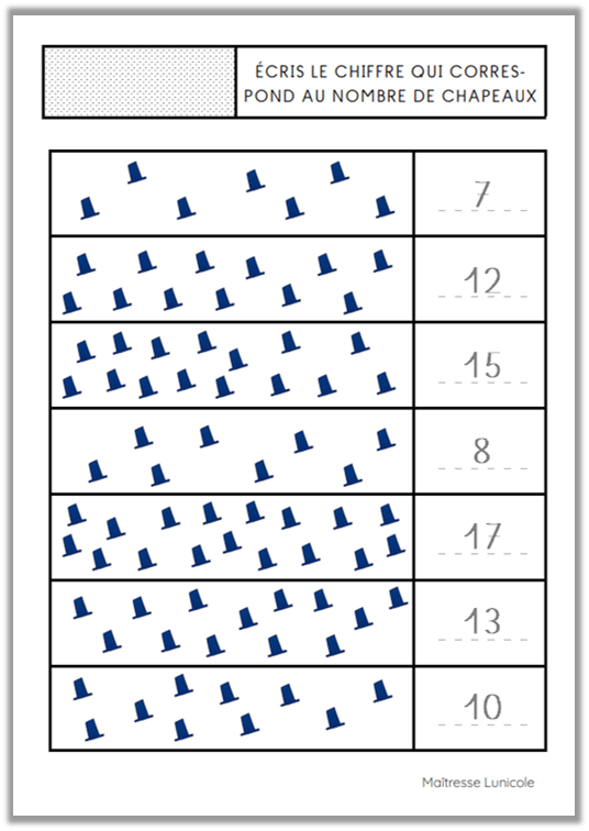 - Écris le nombre qui correspond à la quantité de chapeaux