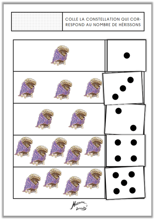 - Colle la constellation qui correspond au nombre de hérissons (différencié)