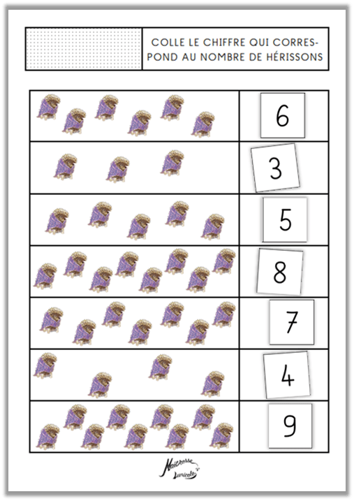 - Colle le chiffre qui correspond au nombre de hérissons (différencié)