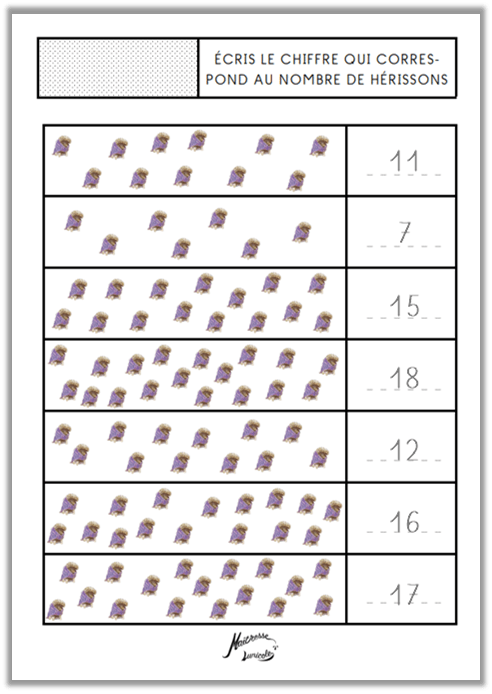 - Écris le chiffre qui correspond au nombre de hérissons (différencié)