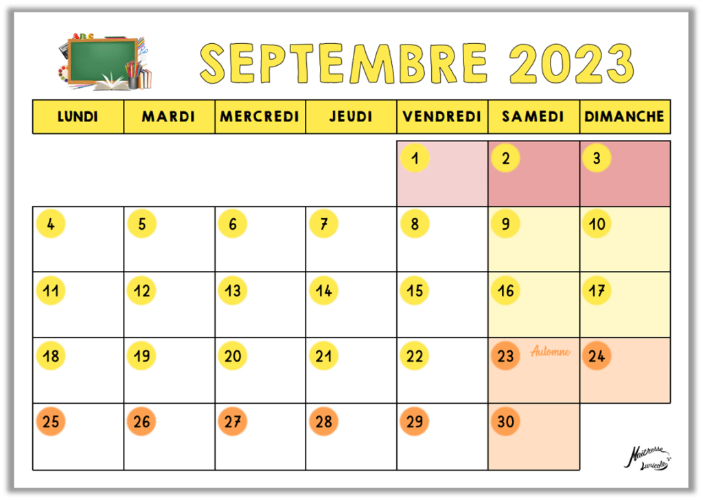 Vous pouvez également jeter un œil aux calendriers pour la maternelle que j’ai publiés en juillet (76 versions disponibles : en tableaux, verticaux, horizontaux, avec/sans école le mercredi ou le mercredi matin…).