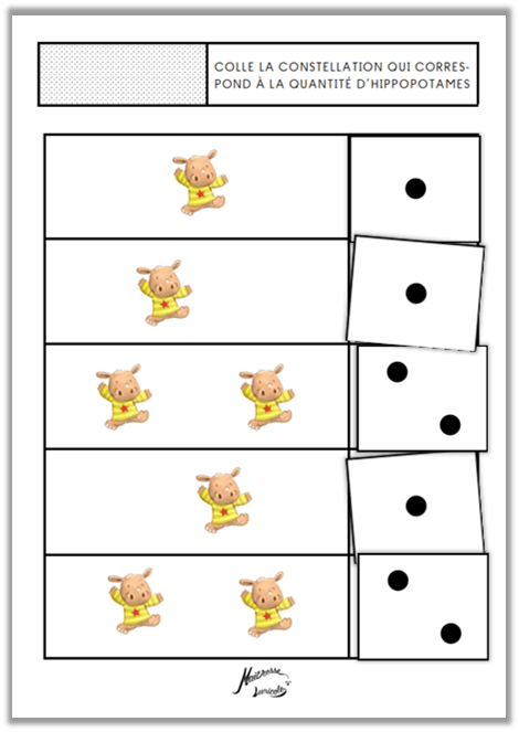 3. Colle la constellation qui correspond à la quantité d’hippopotames (1 à 2, 1 à 3, 1 à 4, 1 à 5)