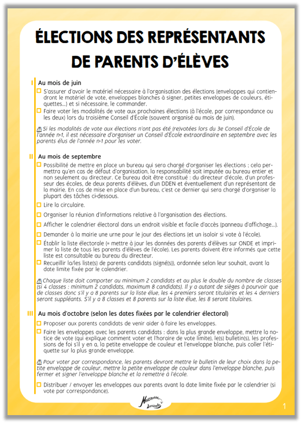 La période des élections des représentants de parents d’élèves est une période très dense et leur organisation nécessite d’être très organisé et de ne rien oublier.
