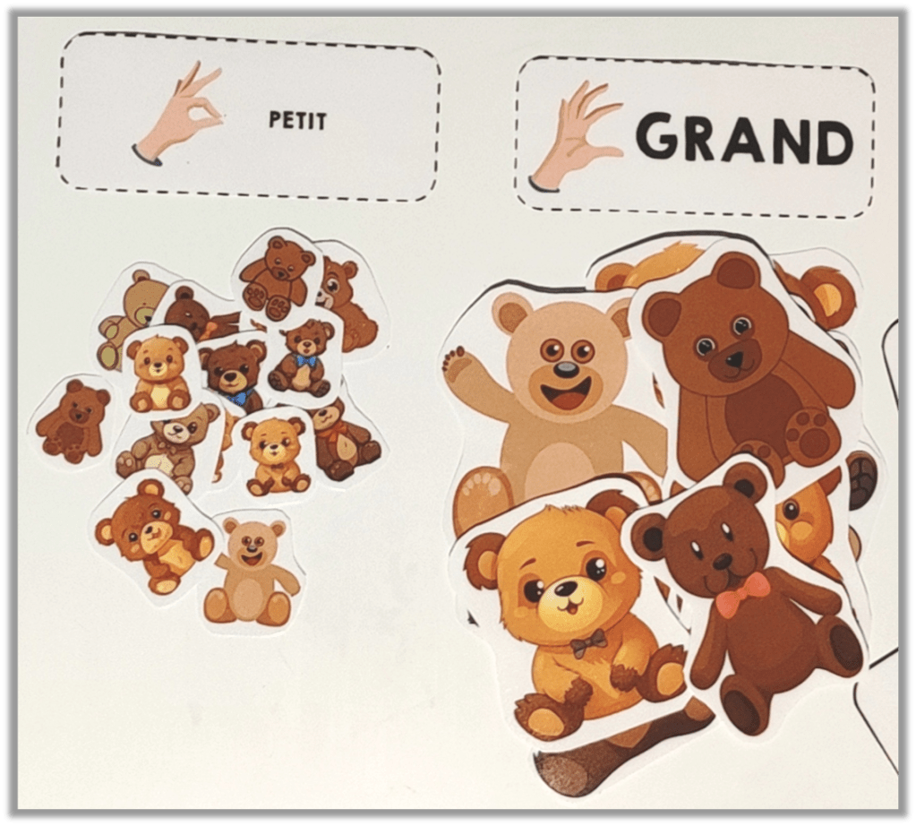 13. NOUVEAU : Ours à comparer selon leur taille (petit / grand ou petit / moyen / grand)