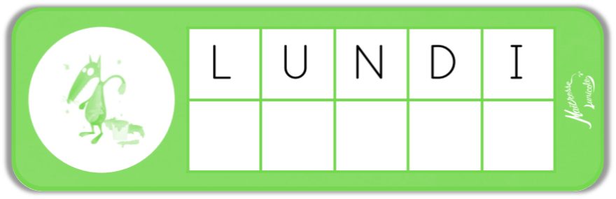 - Des planches pour reformer les noms des jours de la semaine avec des lettres mobiles
