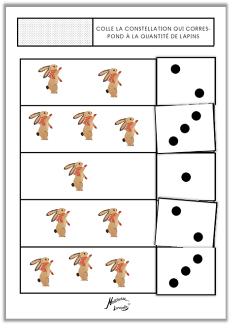• Colle la constellation qui correspond à la quantité de lapins (1 à 2, 1 à 3, 1 à 4, 1 à 5)