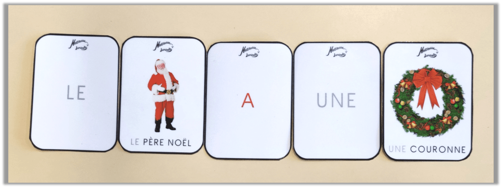 En l’occurrence, j’ai utilisé en parallèle les cartes provenant de mon imagier de Noël, disponibles ICI.