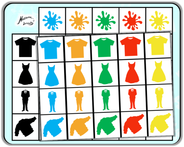 Dans l’idéal, si possible, à imprimer en A3 et à plastifier (puis à découper, pour les vêtements).