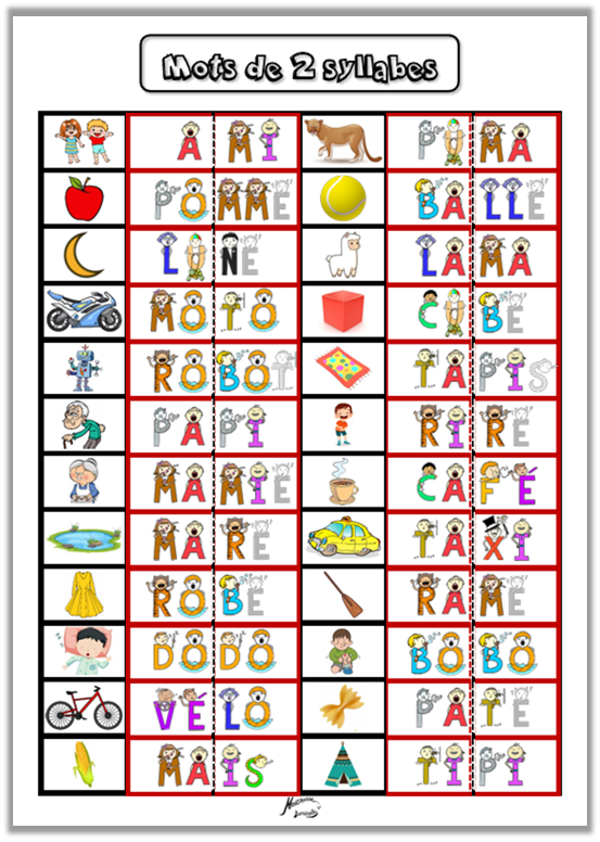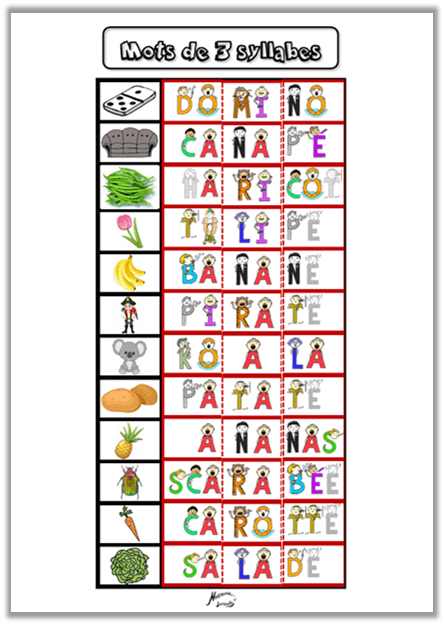 (Certaines syllabes peuvent être à imprimer plusieurs fois pour réaliser ces mots)
