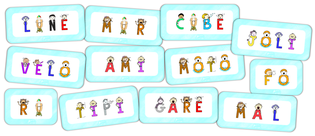 - Cartes de lecture (syllabes / mots de 3 lettres / mots de 4 lettres)