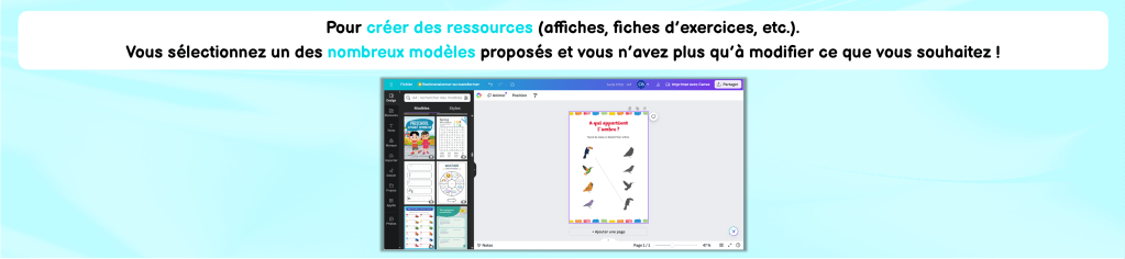 Un super outil pour créer des ressources facilement et rapidement (affiches, fiches d’exercices, etc) grâce aux nombreux modèles proposés ✨