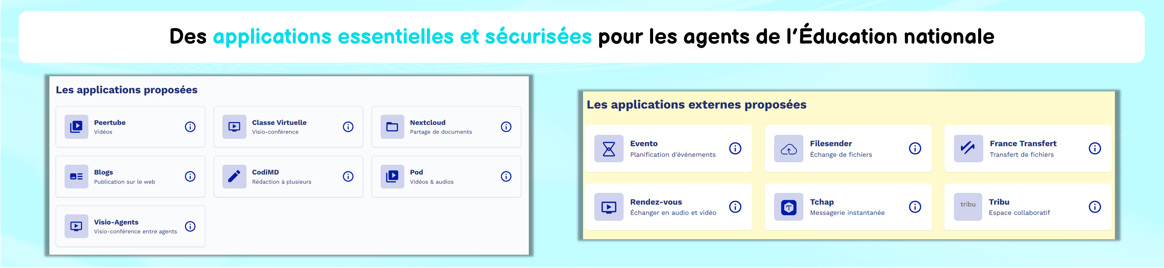 Des applications essentielles et sécurisées développées par la Direction du Numérique pour l’Éducation :