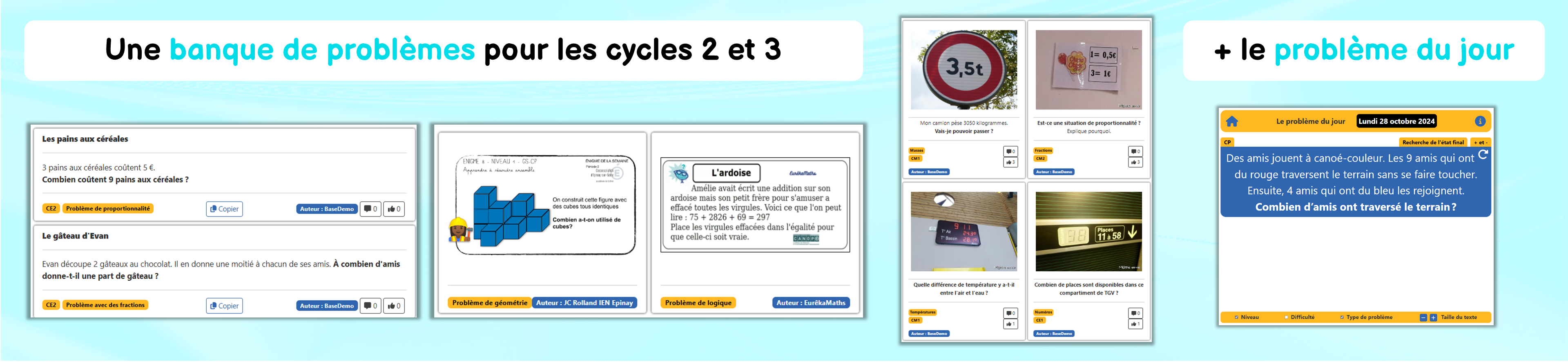Une banque de problèmes collaborative pour les élèves du CP à la 6e (rdv sur le 3e lien sous l’image pour les problèmes destinés à la maternelle) :