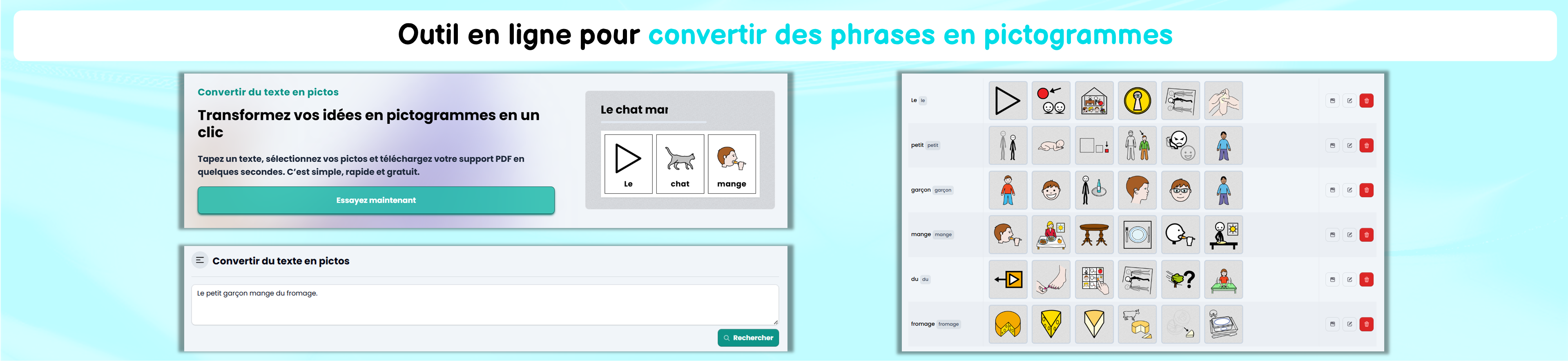 Un outil en ligne pour convertir des phrases sous forme de pictogrammes :
