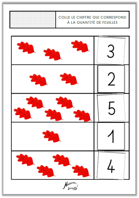 - Colle le nombre qui correspond à la quantité de feuilles (différencié)