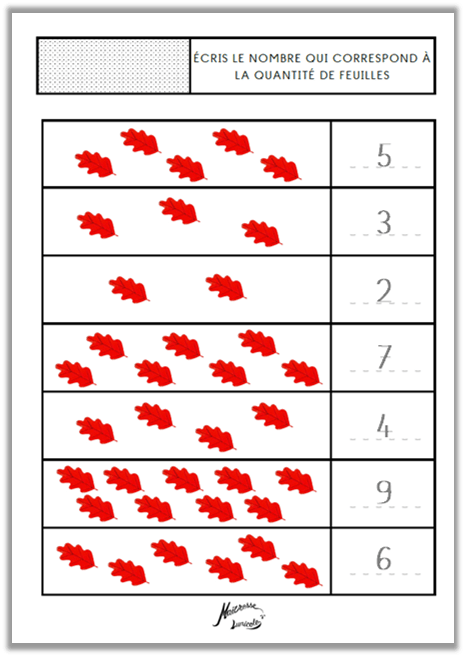 - Écris le nombre qui correspond à la quantité de feuilles (différencié)