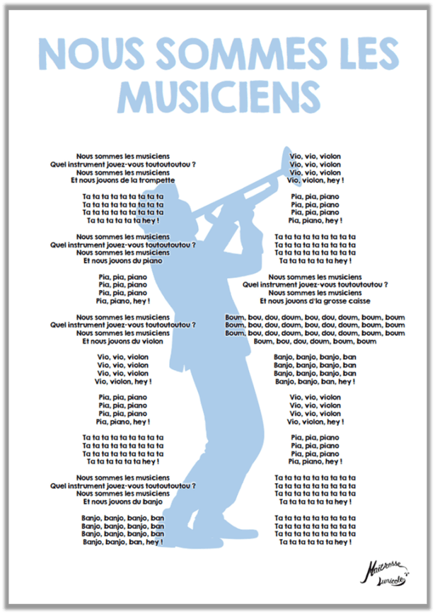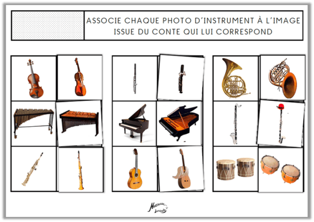 Voici les sons des instruments présents dans le conte, à faire écouter et reconnaître aux élèves. Selon l’âge et le niveau des élèves, l’objectif peut être différent :