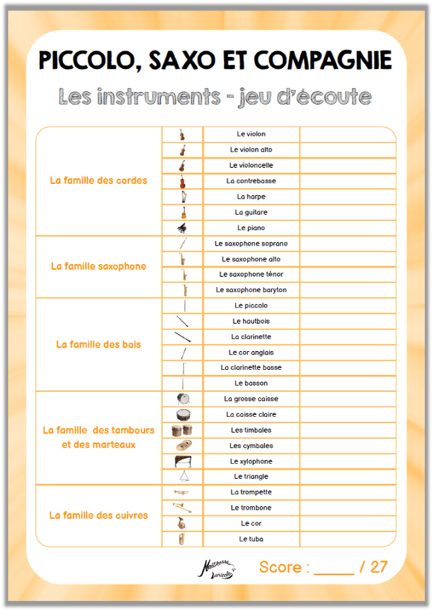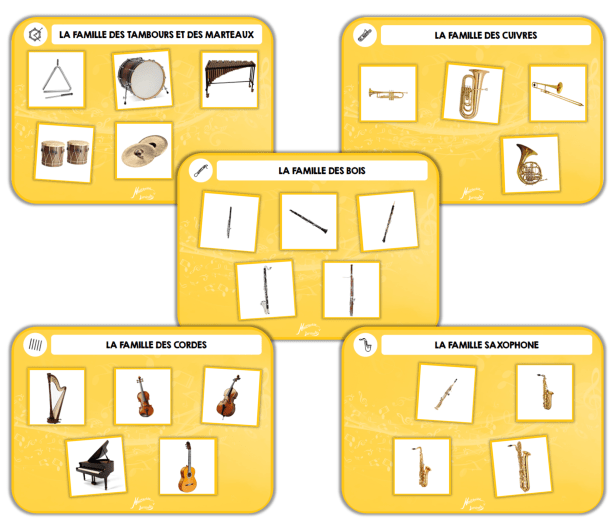 Range chaque instrument dans la famille correspondante (réutilisable / à plastifier)