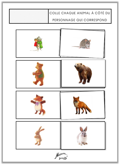 Associe chaque photo d’animal au personnage de l’album qui correspond