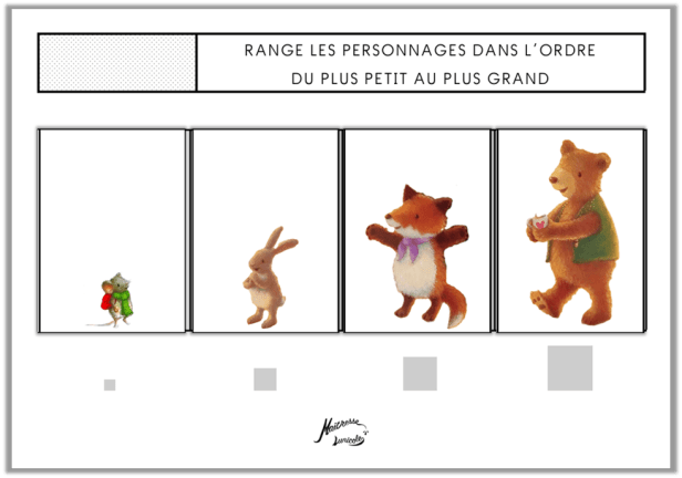 Colle les personnages dans l’ordre du plus petit au plus grand