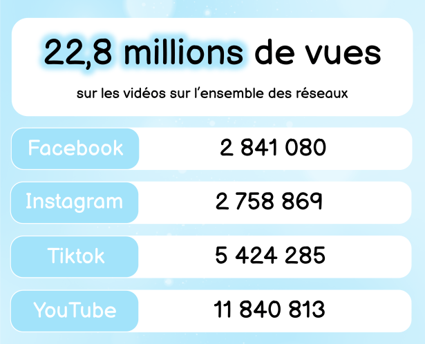 Les vidéos cumulent au total 22,8 millions de vues sur les différents réseaux :