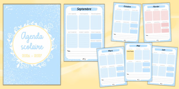 | → Page de garde → 52 pages correspondant aux 52 semaines allant du 27 juillet 2026 au 25 juillet 2027 Je l’ai conçu au format A4 mais si vous préférez un agenda au format A5, il vous suffit de l’imprimer en 2 pages par feuille. Annexes disponibles en 7 versions : → zone A, zone B, zone C, Réunion, Belgique, vierge avec jours fériés, vierge sans jours fériés |